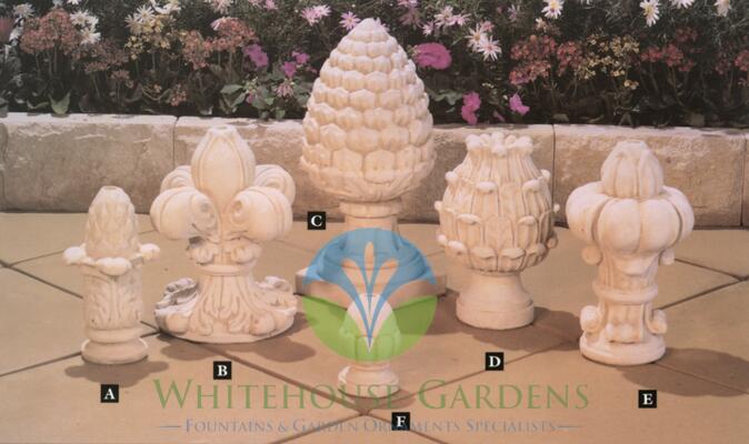 Finials are decorative elements typically placed at the top of structures like fence posts, gates, or spires. Often crafted from materials such as metal, stone, or ceramic, they serve both ornamental and functional purposes, adding a finishing touch to garden features and protecting the top of posts from weather damage. Finials come in a variety of designs, from simple and classic to intricate and ornate, complementing a range of outdoor themes and styles. They can give a garden a sense of refinement and help define the boundaries of a space.